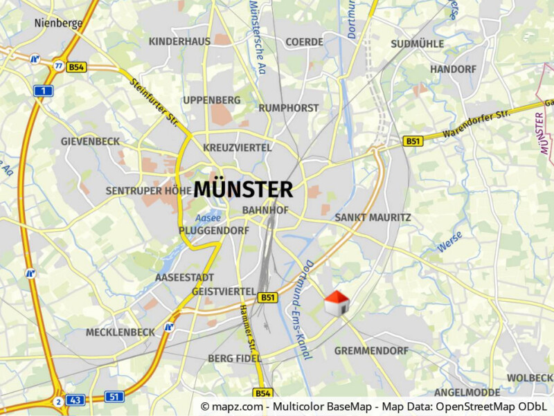 Mit dem ÖPNV ist der Münsteraner Hauptbahnhof sowie die Innenstadt, mittels der Bushaltestelle direkt vor dem Objekt, gut zu erreichen.