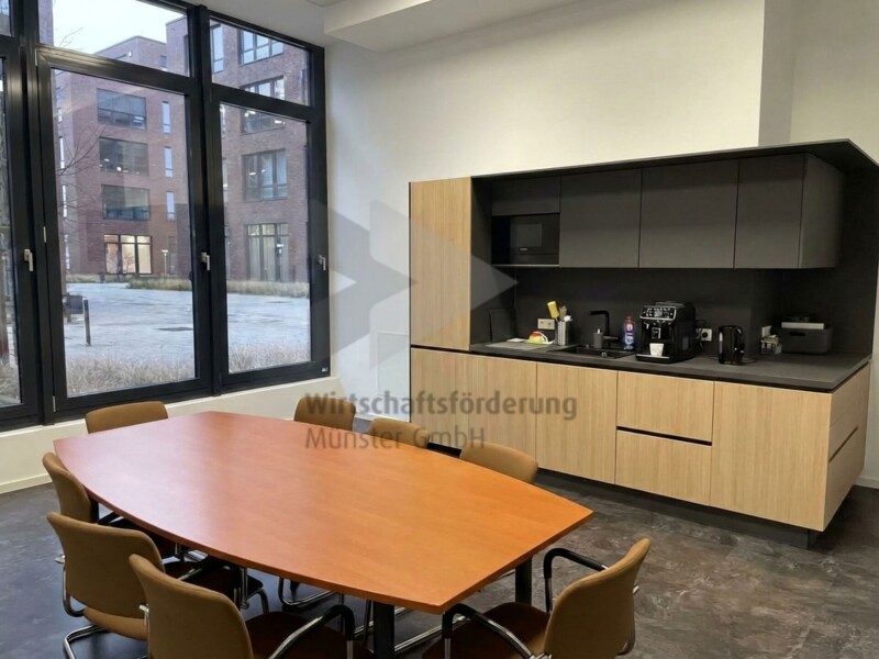 Zur Bürofläche gehören eine Küche und ein Besprechungsraum, die gemeinschaftlich genutzt werden. Zudem steht eine schallisolierte Telefonbox zur Mitbenutzung zur Verfügung.