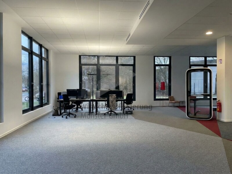 Die Fläche zeichnet sich durch 4,20 m hohe Decken und entsprechend großzügige Fensterflächen aus, die viel Tageslicht hereinlassen. Zur Ausstattung gehört eine außenanliegende Raffstoreanlage, Fußbodenheizung mit Kühlfunktion, eine Lüftungsanlage und eine moderne IT-Verkabelung.