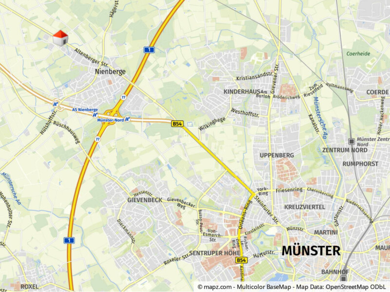 Der aus drei Häusern bestehende Gebäudekomplex liegt im Münsteraner Stadtteil Nienberge im Gewerbegebiet Feldstiege, etwa sechs Minuten Fahrzeit von der Autobahnauffahrt Münster Nord (BAB 1) entfernt. In unmittelbarer Umgebung befindet sich eine Bushaltestelle. Der Hauptbahnhof Münster und der Flughafen Münster-Osnabrück sind jeweils innerhalb von 20 Minuten mit dem Pkw erreichbar.
