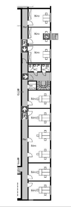 Im 1. Obergeschoss eines gepflegten Gewerbeobjekts in Münster-Nienberge steht ab sofort eine attraktive Bürofläche mit ca. 230 m² zur Anmietung bereit. Sie verfügt über sieben Büroräume für je 2-3 Arbeitsplätze und einen Büroraum für bis zu 6 Arbeitsplätze, der sich auch als Besprechungsraum eignet. Außerdem sind eine Teeküche sowie eine separate WC-Anlage vorhanden. Die Räumlichkeiten sind mit mit einer modernen EDV-Verkabelung, Teppichboden und Glastüren ausgestattet. Durch große Fensterflächen wirken die Räume hell und ansprechend.