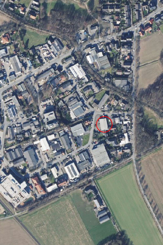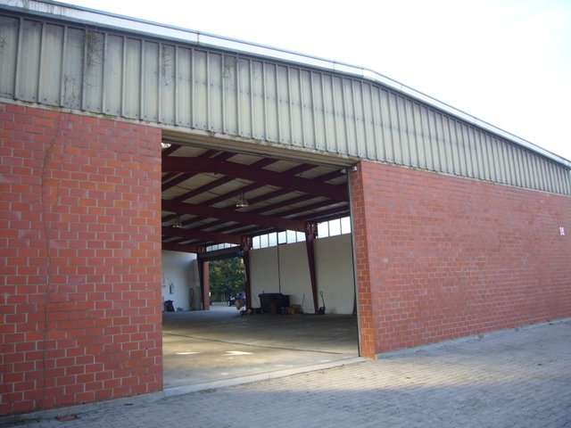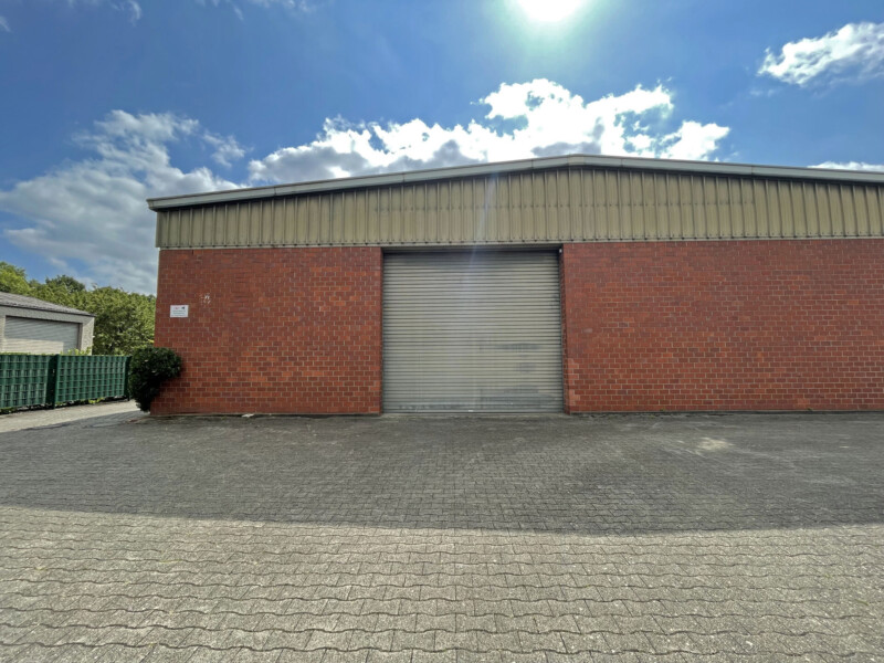 Merkmale und Ausstattung: Massivbauweise, Traufhöhe rd. 4,30 m, Giebelhöhe rd. 5,50 m; 2 elektrische Rolltore, schwerlastfähiger Betonboden, Wasser- und Abwasseranschluss, linearer Bodenabfluss, Starkstromanschluss (3 x 16A, 1x 32A), seitliche Lichtbänder, Quecksilberlampen, Fußbodenheizung im Büro, ausreichende Anzahl von Kunden- und Mitarbeiterstellplätzen